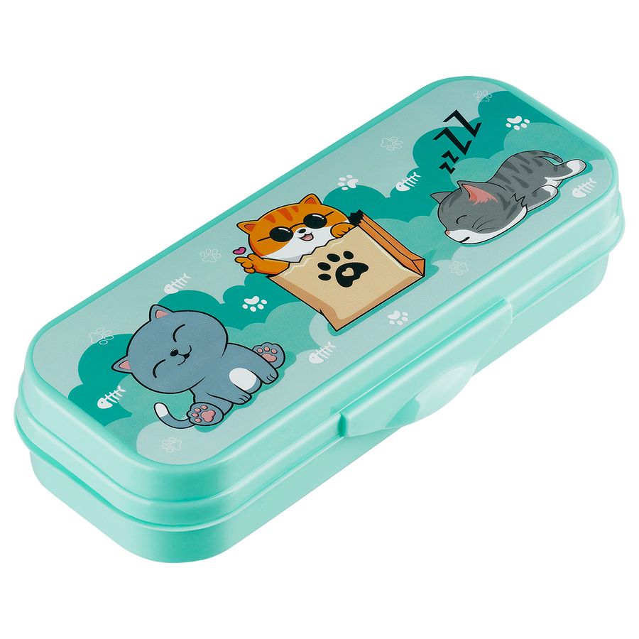 Пенал-футляр «СТАММ» «Коты» поможет стильно и аккуратно хранить канцелярские принадлежности. Лёгкий и прочный пенал прямоугольной формы оборудован одним отделением повышенной вместимости. Размер изделия – 215*90*43 мм. Пенал изготовлен из качественного полипропилена и имеет надёжный и лёгкий в обращении замок. Изделие голубого цвета представлено в ярком и стильном дизайне. • Размер: 215*90*43 мм;• Форма: прямоугольная;• Материал: полипропилен;• Цвет: бирюзовый.