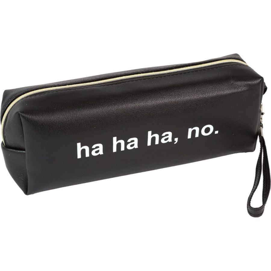 Пенал-косметичка "deVENTE. Это шедевр" 21,5x8x5 см, прямоугольный для 75 предметов, на молнии, матовая черная искусственная кожа, с ручкой-петлей на карабине, 3 дизайна ассорти