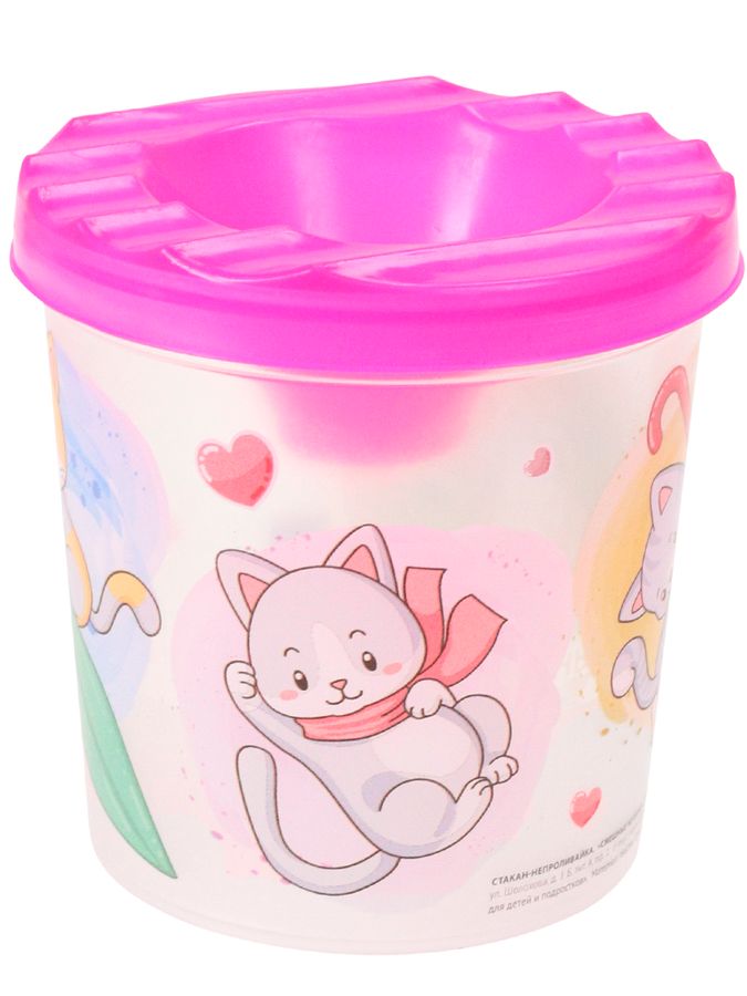 Пластиковый стакан-непроливайка идеально подойдет как школьникам на уроках рисования, так и маленьким художникам дома и в детском саду! Крышка с отверстием в центре имеет желобки для кистей. При заполнении стакана до указанной линии вода не прольется при случайном переворачивании. Корпус с дизайном.