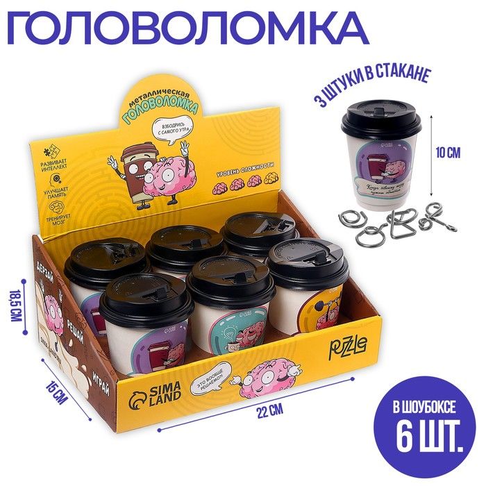Головоломка металлическая "Взбодрись с самого утра", 3 штуки в стакане