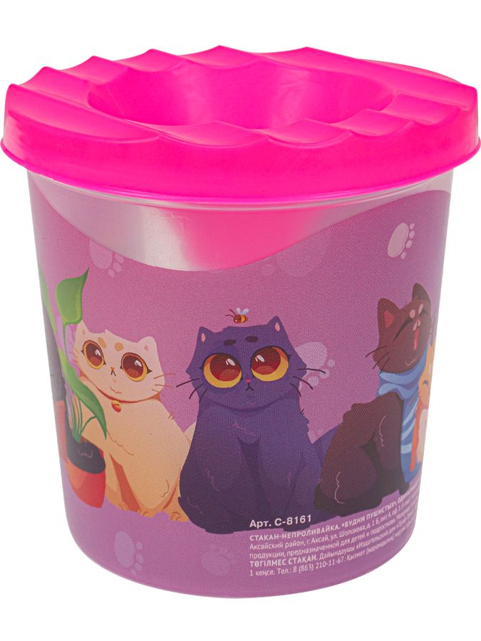 Пластиковый стакан-непроливайка идеально подойдет как школьникам на уроках рисования, так и маленьким художникам дома и в детском саду! Крышка с отверстием в центре имеет желобки для кистей. При заполнении стакана до указанной линии вода не прольется при случайном переворачивании. Корпус с дизайном.