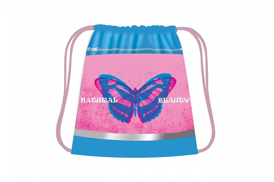 Сумка для сменной обуви, ткань, дизайн, с карманом и светоотражающей полосой, 420/340 (30) (СДС-71, БАБОЧКА НА РОЗОВОМ 2023)