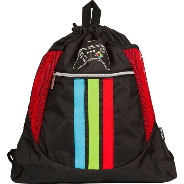 Сумка для сменной обуви и спортивных секций "deVENTE. GAME" 38x43 см, плотный полиэстер, передний карман на молнии, сетчатые карманы, донное расширение 8 см, аппликация из каучука, на веревочной завязке, с петлей для повеса и переноски