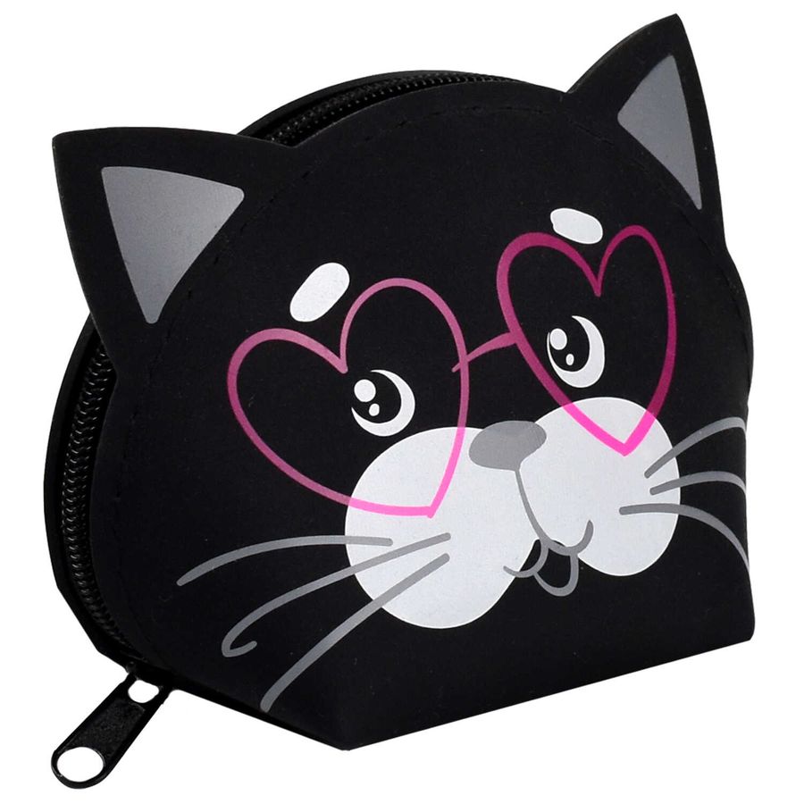 Кошелёк для банкнот и монет, арт.54269/ 25 ЧЁРНЫЙ КОТ В ОЧКАХ (10х7х5.5 см, силикон, молния, шелкография в три краски, ПЭТ-пакет)