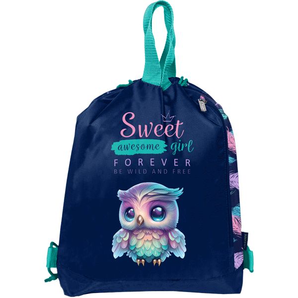 Сумка для сменной обуви и спортивных секций "deVENTE. Happy Owl" 38x43x9 см, водоотталкивающая ткань, дно с расширением 9 см, большой карман на молнии, на веревочной завязке, с ручками