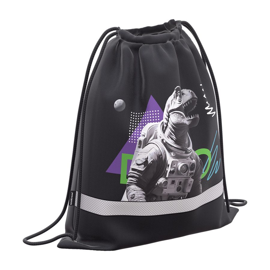 Мешок для обуви увеличенного размера 50х41 см, его габариты позволяют разместить в нём зимнюю обувь. У модели имеется вставка из светоотражающей ленты с перфорацией, которая хорошо вентилирует мешок. Мешок изготовлен из износо- и морозостойкого водоотталкивающего 100% полиэстера 300D, а также снабжён прочными шнурами и люверсами. Такой мешок отлично подходит для сменной обуви в школе либо для занятий спортом.