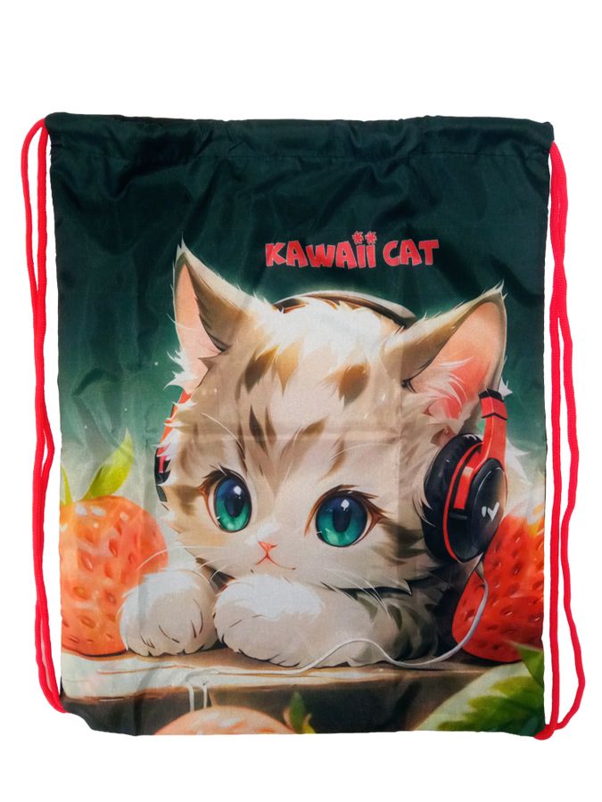 Сумка для сменной обуви "Attomex. Kawaii Cat" 35x43 см, 1 отделение, водоотталкивающая ткань с рисунком, на веревочной завязке