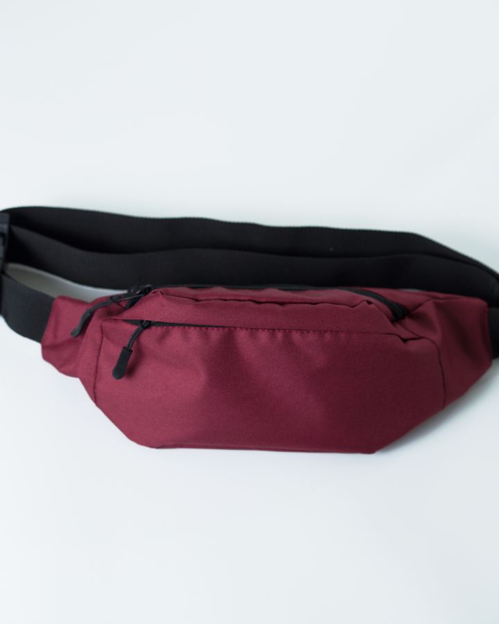 Состав 100% полиэстер. Размер 34х12х11 см. Цвет бордовый. 3 кармана на молнии. С регулируемым ремешком. Уход: Протирать мыльным раствором без хлора температурой до 30 градусов.