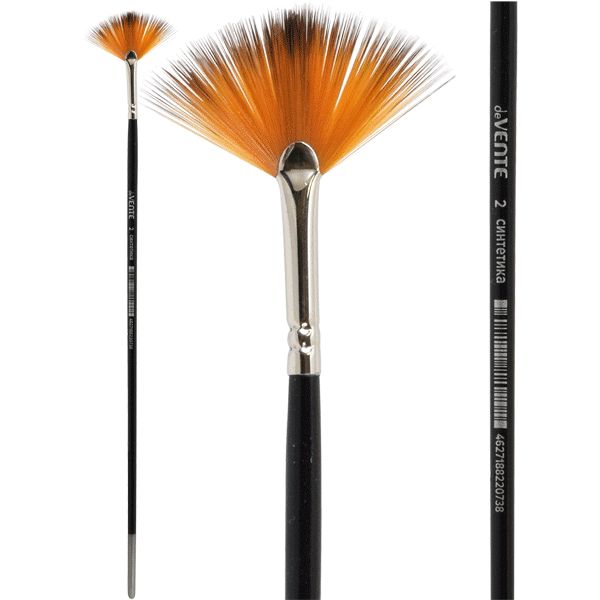 Кисть художественная "deVENTE. Art" синтетика № 02 веерная, удлиненная деревянная ручка с многослойным лакокрасочным покрытием, никелированная обойма, индивидуальная маркировка