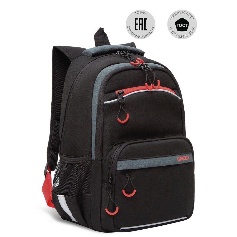 Рюкзак школьный 2отд. Черный-красный 39х28х19см GRIZZLY