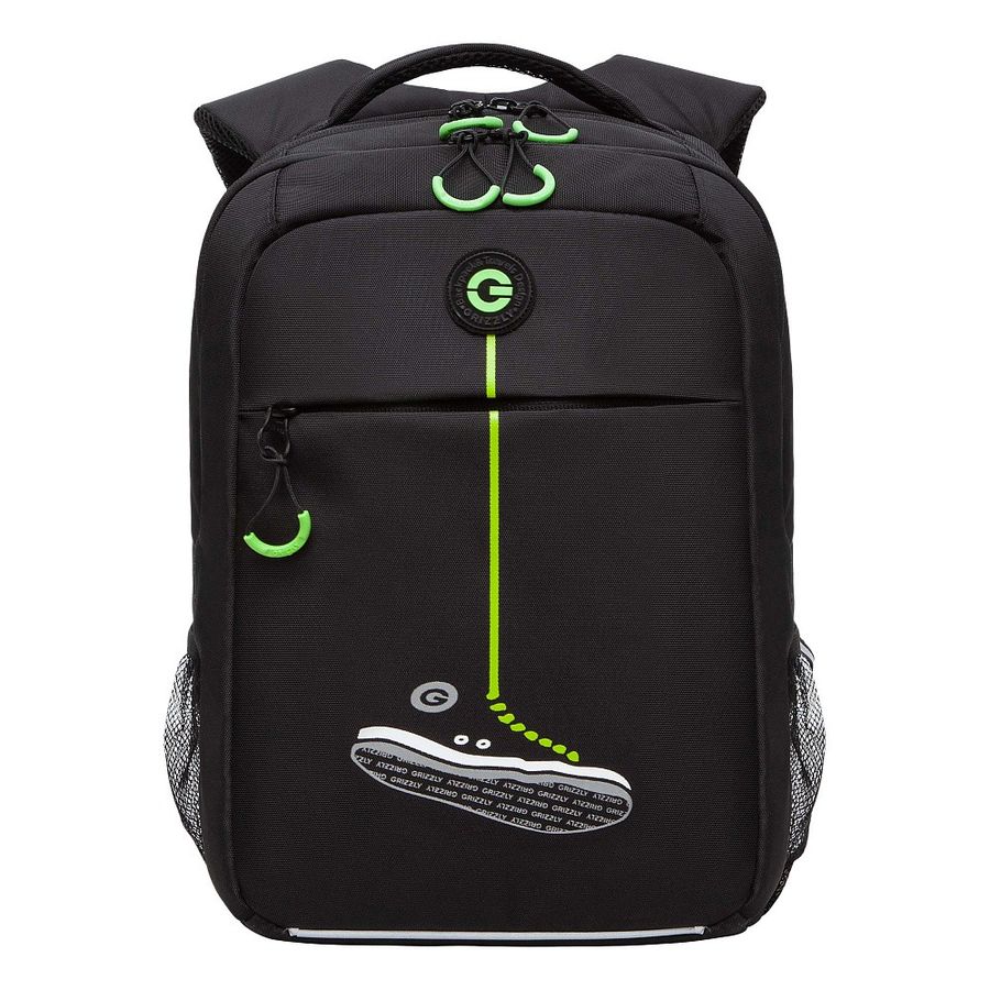 Рюкзак школьный 1отд. Черный-салатовый 14,5L 26х39х19см GRIZZLY