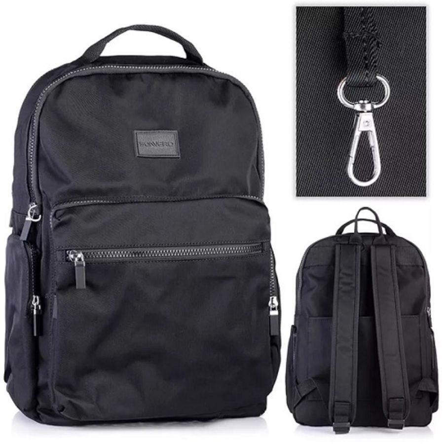 Рюкзак Sanvero школьный для девочек, 41x30x16, 2 отделения на молнии, в т.ч. одно для ноутбука - планшета, 2 фронтальных кармана на молнии, 2 боковых кармана на молниях, материал - уплотненный водоотталкивающий полиэстер 600D, уплотненная спинка, металлические пуллеры под цвет рюкзака, черный
