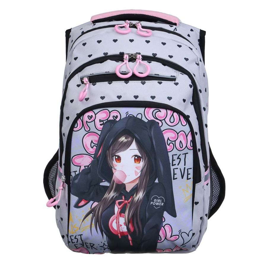 Школьный рюкзак "Гёрл Павер" – идеальный выбор для вашего ребёнка! Размеры рюкзака – 41x28x16 см, он имеет два отделения и два боковых сетчатых кармана для бутылок с водой или зонта. Два внешних кармана на молнии обеспечивают быстрый доступ к самым необходимым вещам. Эргономичная спинка и регулируемые лямки обеспечивают комфорт при ношении, а удобная ручка позволяет легко переносить рюкзак. Изготовлен из прочного и долговечного материала – полиэстера, а отдельные детали отделаны искусственной кожей. Этот рюкзак станет незаменимым помощником для вашего школьника и поможет организовать хранение всех необходимых вещей.
