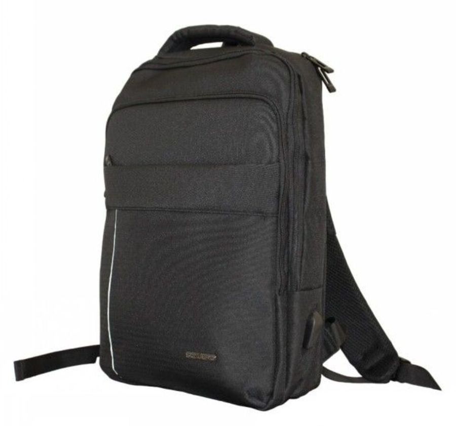 Рюкзак Sanvero 41х28х17, 1 основное отделение на молнии с внутренними карманами и органайзером для мелких предметов, 1 отделение для ноутбука с внутренним отделением на липучке, 2 передних кармана на молнии, 1 боковой карман, USB - порт, уплотненная воздухопроницаемая спинка и лямки, ЧЕРНЫЙ