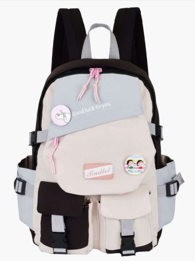 Рюкзак Sanvero школьный 42x28x18, 1 основное отделение, 3 фронтальных кармана, 2 боковых кармана, 1 карман на спине, мтаериал - 100% полиэстер, черный/бежевый/голубой