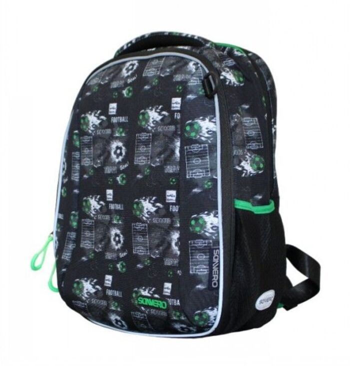 Рюкзак школьный 2отд. Черно-зеленый 39х29х22см жесткая спинка светоотражающий Sanvero