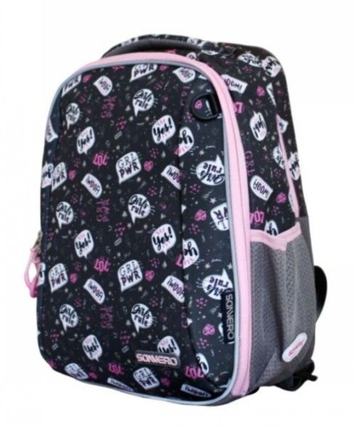 Рюкзак Sanvero жесткий 39х29х22, 2 основных отделения, 3 внутренних отделения, 2 кармана на молниях, органайзер для мелких предметов и ручек, именная карточка зля заполнения, фасад рюкзака жесткий, формоустойчивый, 2 боковых кармана из эластичной сетчатой ткани на резинках, жесткая эргономичная вентилируемая спинка, новейшие амортизационные воздухопроницаемые эргономичные лямки с жесткими кордамии и распределителями нагрузки, прочное прорезиненное дно с ножками, жесткая укрепленная ручка, водонепроницаемая ткань со светоотражателями.