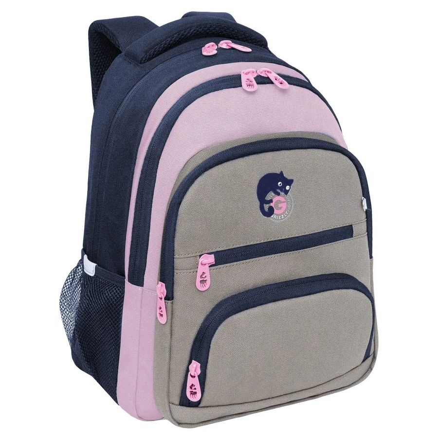 Стильные школьные рюкзаки GRIZZLY мы разработали специально для учащихся начальной и средней школы ростом от 125 до 140 см. Модель объемная — 15,5 л. Внутри помещается много вещей. Для них предусмотрено 3 отделения и много карманов: для ноутбука 13”, папок и пособий формата А4, канцелярских и других принадлежностей. Снаружи 2 боковых кармана для зонта и бутылки с водой. Ребенок раскладывает все по своим местам и внутри поддерживается идеальный порядок. У рюкзака нагрудная стяжка со свистком, укрепленные лямки и спинка, поэтому даже при больших нагрузках осанка остается здоровой. Чтобы повысить безопасность в темное время суток, мы добавили со всех сторон светоотражающие элементы. За счет водо- и грязеотталкивающей пропитки рюкзак долго остается как новый. Если он все же чем-то испачкался, мы рекомендуем ручную стирку в холодной воде. Стильные дизайны понравятся юным модницам.