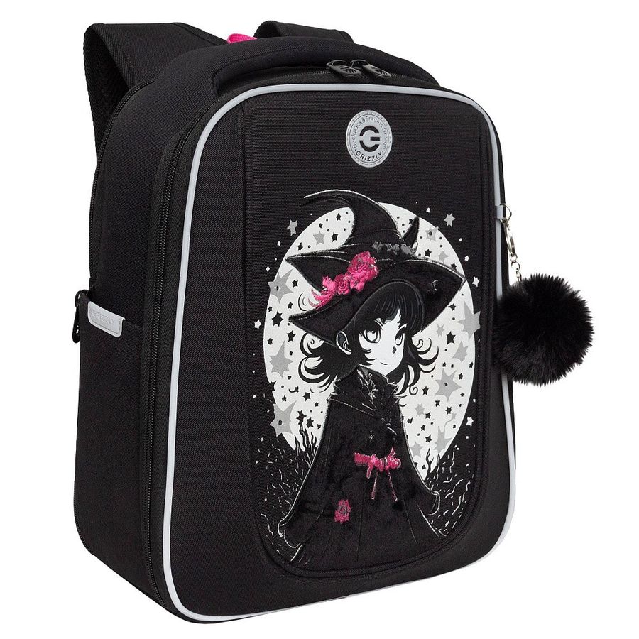 Рюкзак школьный 2отд. Чёрный-розовый 29х36х18см GRIZZLY