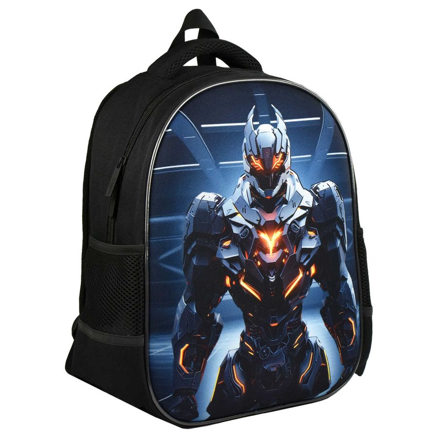 Ранец школьный Феникс+ арт.68235/ 6 ОГНЕННЫЙ РОБОТ (27,5x37,5x14,5 см, полиэстер, ЭВА-панель, сублимационная печать, 1 отделение (-я), молния, тип спинки: формоустойчивая спинка из сетчатой ткани и поролона, тип дна: с пластиковыми ножками, ПЭТ-пакет с ручкой)