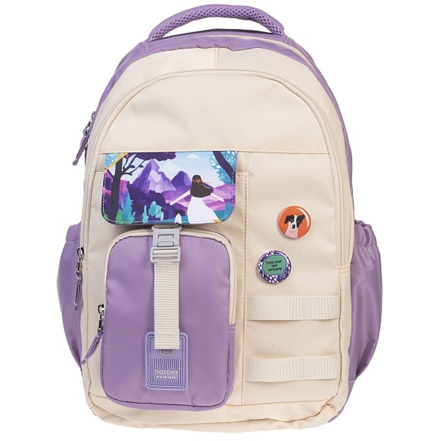 Модный практичный рюкзак для школьников и студентов. Два больших отделения, два передних кармана и глубокие боковые карманы - позволят разместить всё необходимое для учебы и отдыха. Уплотненные спинка и дно, мягкие вентилируемые S-образные лямки, петля для подвеса. Ткань с водоотталкивающим покрытием.