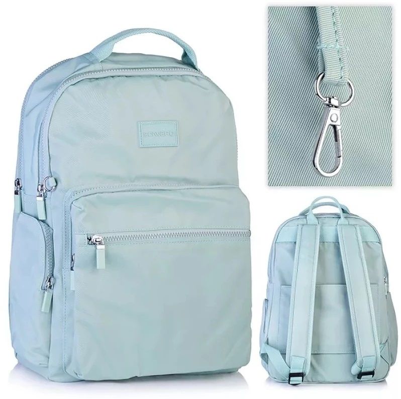 Рюкзак Sanvero школьный для девочек, 41x30x16, 2 отделения на молнии, в т.ч. одно для ноутбука - планшета, 2 фронтальных кармана на молнии, 2 боковых кармана на молниях, материал - уплотненный водоотталкивающий полиэстер 600D, уплотненная спинка, металлические пуллеры под цвет рюкзака, мятный, BP21002