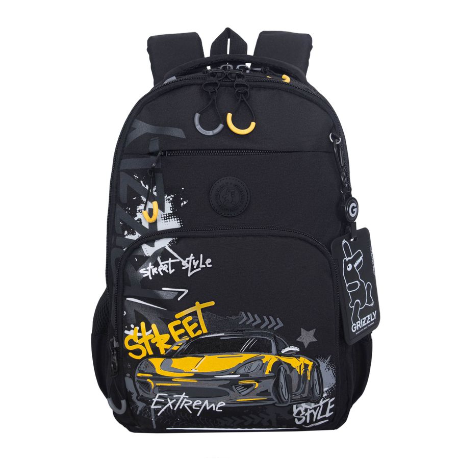 Рюкзак школьный 2отд. Черный-серый 28х40х15,5см GRIZZLY