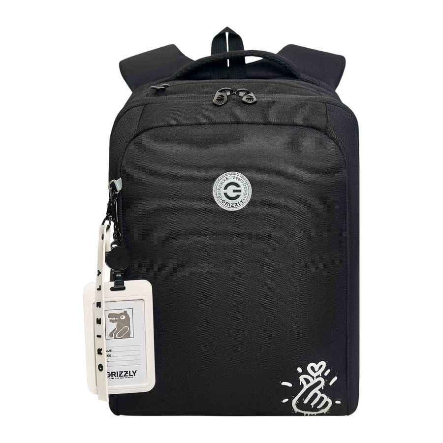 Рюкзак школьный 2отд. Черный-белый 26х39х17см GRIZZLY
