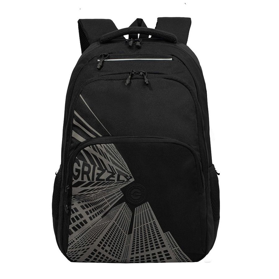 Рюкзак школьный 2отд. Черный-серый 32х45х23см GRIZZLY