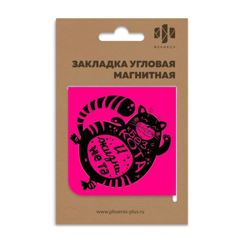 Закладка/ручка магнитная БЕЗ КОТА И ЖИЗНЬ НЕ ТА (60x60мм, угловая, мелов. бумага на ферроагломерированном полимере, полноцв. печать с ламинацией)