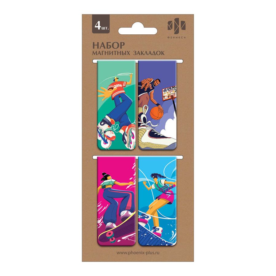Набор закладок магнитных для книг арт. 61146 / 100 СПОРТСМЕНЫ ( 4 шт. в наборе, размер 25х58 мм, материал: мелованная бумага, магнитный винил 0.4 мм; цвет: полноцветный дизайн, особенности: глянцевая ламинация, индивидуальная упаковка: ПЭТ-пакет с европодвесом)
