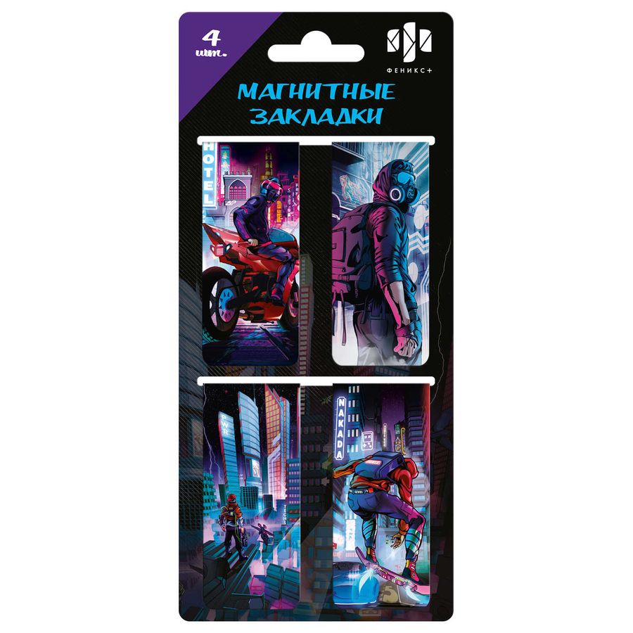 Набор закладок магнитных для книг арт. 65059 / 100 ИГРА В РЕАЛЬНОСТИ (4 шт. в наборе, размер 25х58 мм, материал: мелованная бумага, магнитный винил 0.4 мм; цвет: полноцветный дизайн, особенности: глянцевая ламинация, индивидуальная упаковка: ПЭТ-пакет с европодвесом)