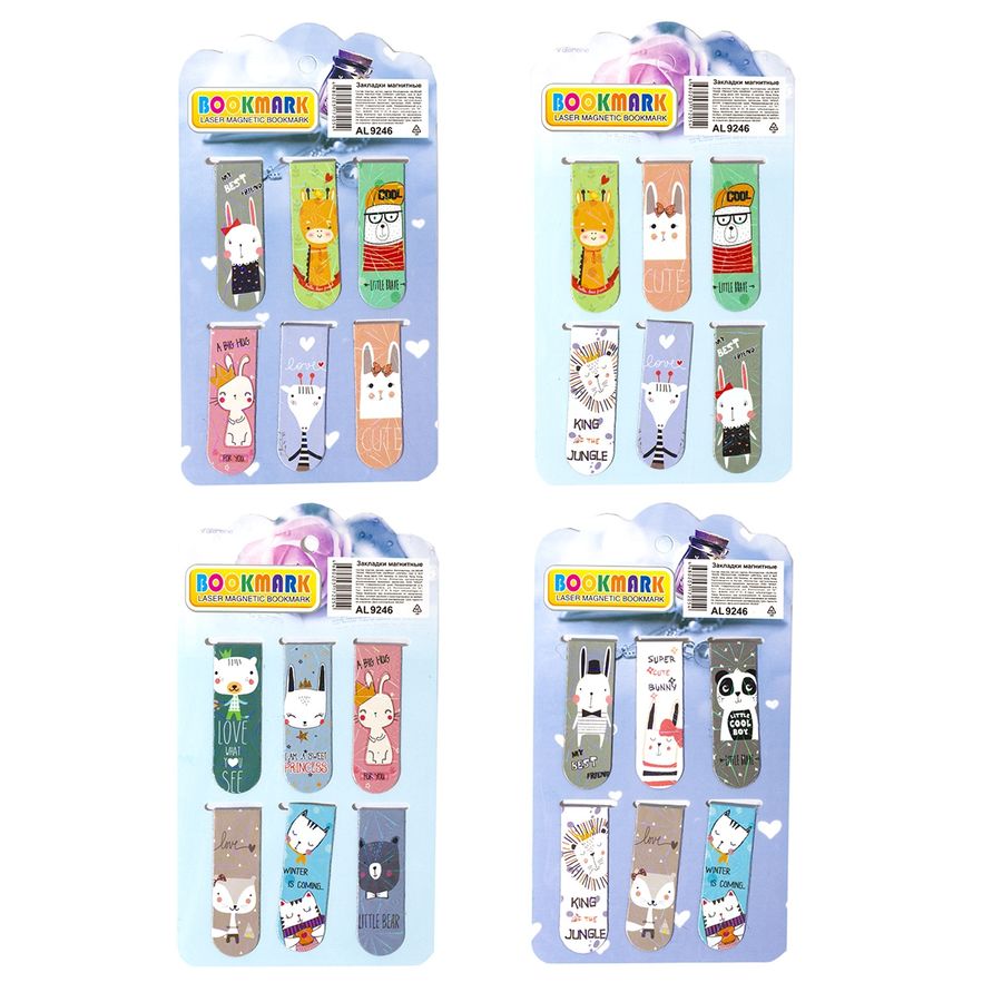 Закладка магнитная набор 6шт Зверюшки