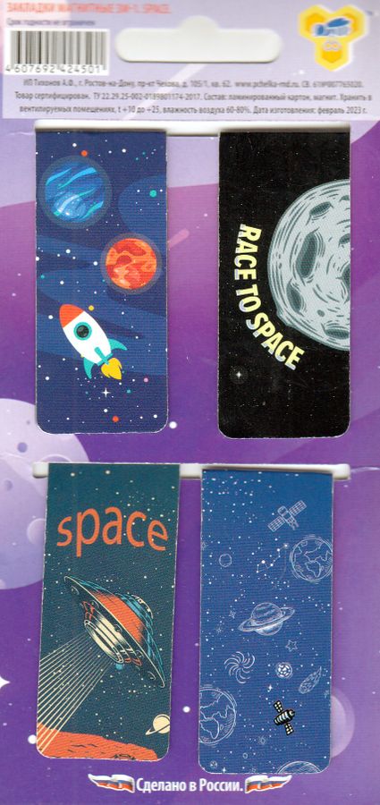Закладки для книг с магнитом, прямоугольные 25х120 (4/360) (ЗМ-1, SPACE 2023), ЗМ-1.