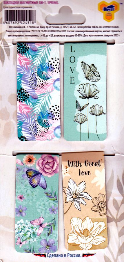 Закладки для книг с магнитом, прямоугольные 25х120 (4/360) (ЗМ-1, SPRING 2023), ЗМ-1