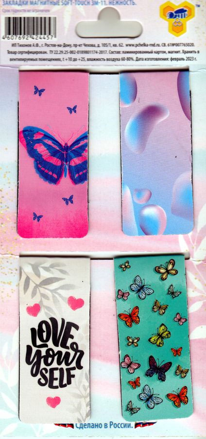 Закладки для книг с магнитом, прямоугольные SOFT 25х120 (4/360) (ЗМ-11, НЕЖНОСТЬ 2023), ЗМ-11.