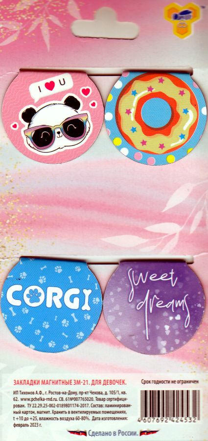 Закладки для книг с магнитом, круглые SOFT 35х65 (4/360) (ЗМ-21, ДЛЯ ДЕВОЧЕК 2023), ЗМ-21