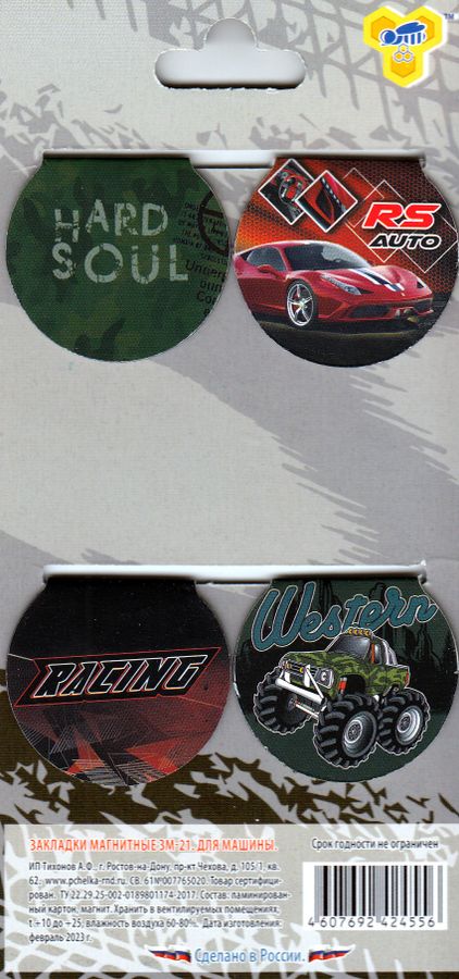 Закладки для книг с магнитом, круглые SOFT 35х65 (4/360) (ЗМ-21, МАШИНЫ 2023), ЗМ-21