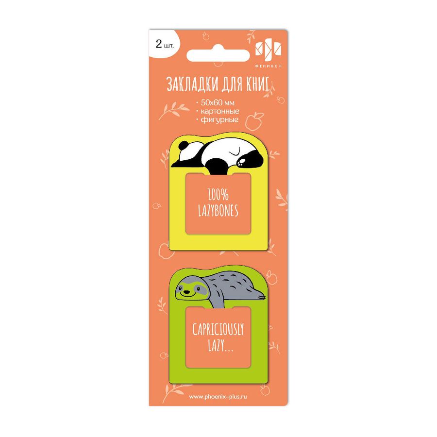 Закладка для книг фигурная арт. 65139 / 48 ПАНДА И ЛЕНИВЕЦ (2 шт. в наборе, размер 50х60 мм, материал: дизайнерский картон; цвет: жёлтый, зелёный, декор: фигурная вырубка, шелкография в две краски, индивидуальная упаковка: подложка из мелованного картона + ПЭТ-пакет с европодвесом)