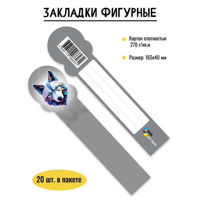 Закладка картонная. Размер: 165х40 мм. Материал: картон целлюлозный двухстороннего мелования, плотностью 270 г/кв.м Печать: офсетная, полноцветная двухсторонняя (4+4), ВД лак с лицевой стороны. Постпечатная обработка: вырубка фигурная.