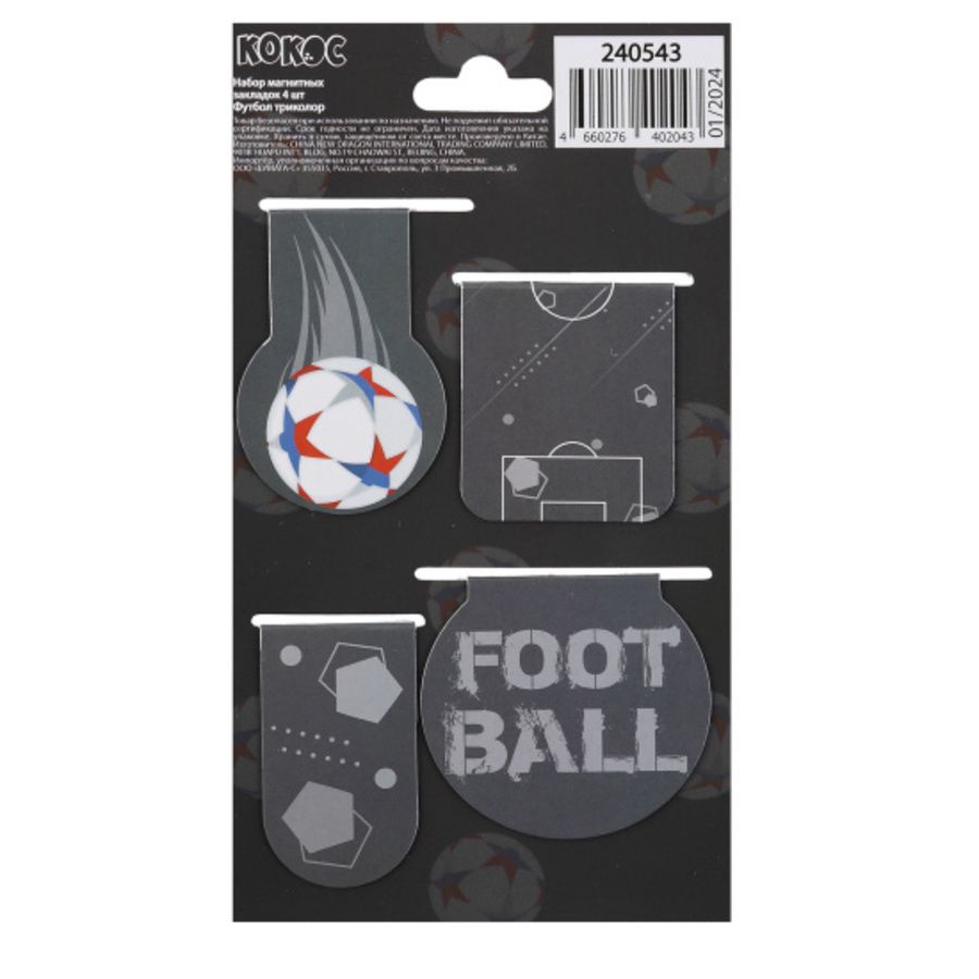 Закладка магнитная набор 4шт Футбол триколор
