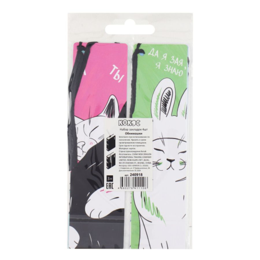 Закладка - вкладыш с лентой набор 4шт Обнимашки 17см
