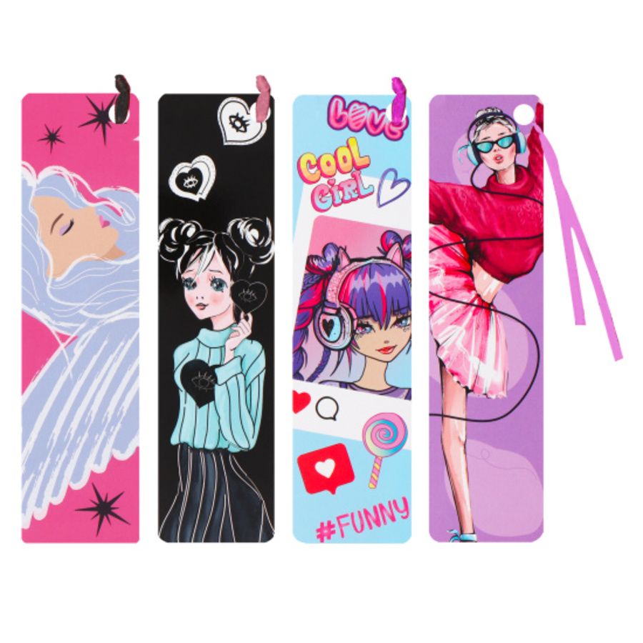 Закладка - вкладыш с лентой набор 4шт Девочки 17см