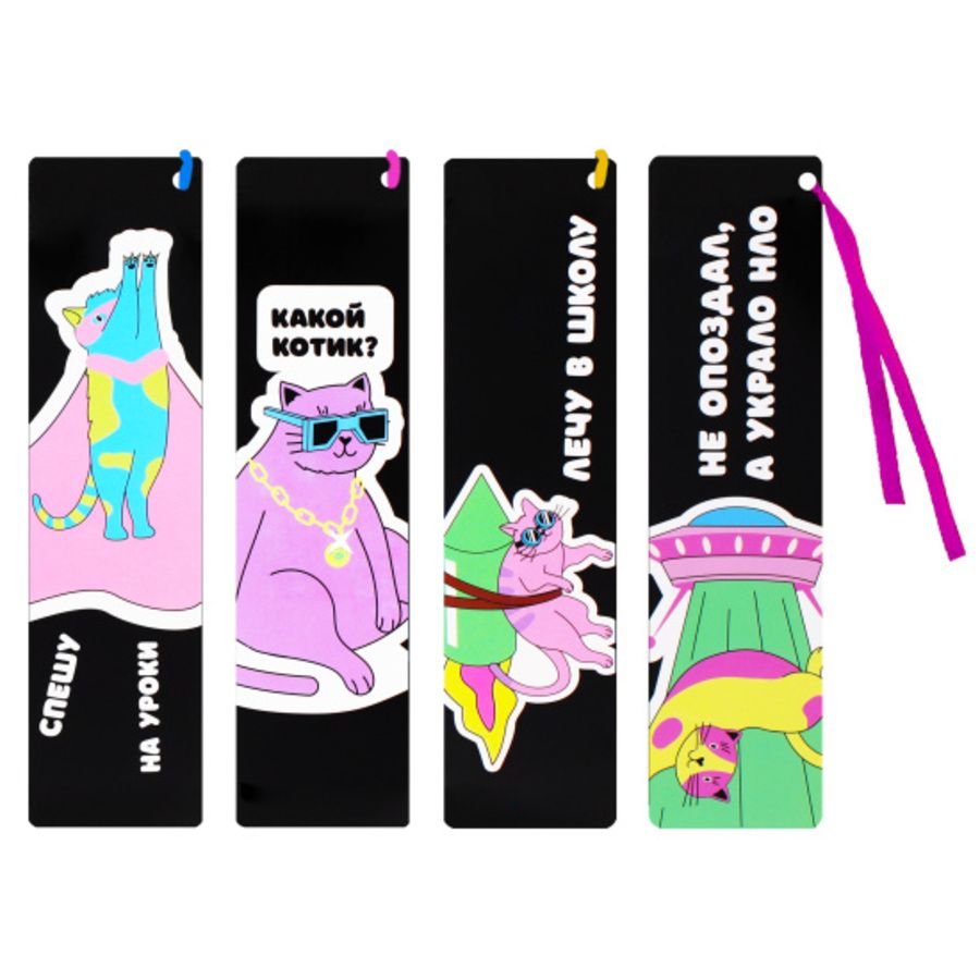 Закладка - вкладыш с лентой набор 4шт Кот без забот 17см