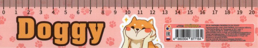 Закладка с линейкой пластик 20см Doggy