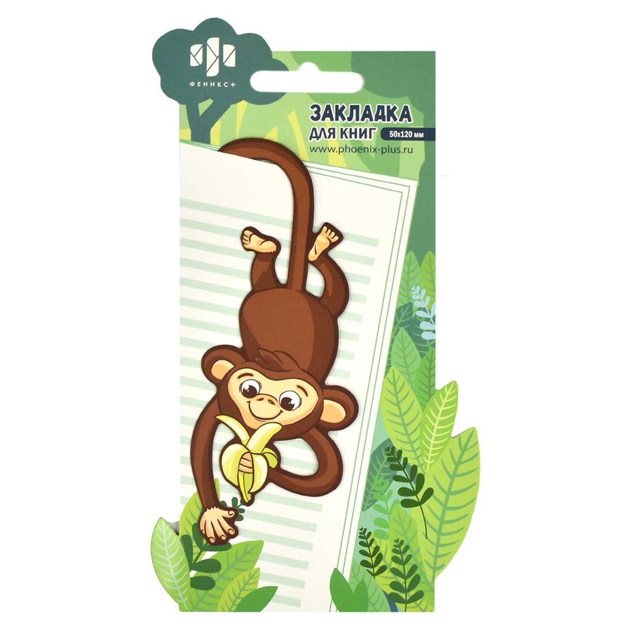 Закладка для книг фигурная арт. 65148 / 160 ОБЕЗЬЯНА (1 шт. в наборе, размер 50х120 мм, материал: мелованный картон; цвет: бежевый, жёлтый, коричневый, декор: матовая ламинация, полноцветный дизайн, фигурная вырубка, индивидуальная упаковка: подложка из мелованного картона + ПЭТ-пакет с европодвесом)