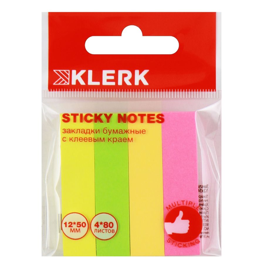 Закладка с липким краем 12х50мм 80л 4цв Neon KLERK 206919