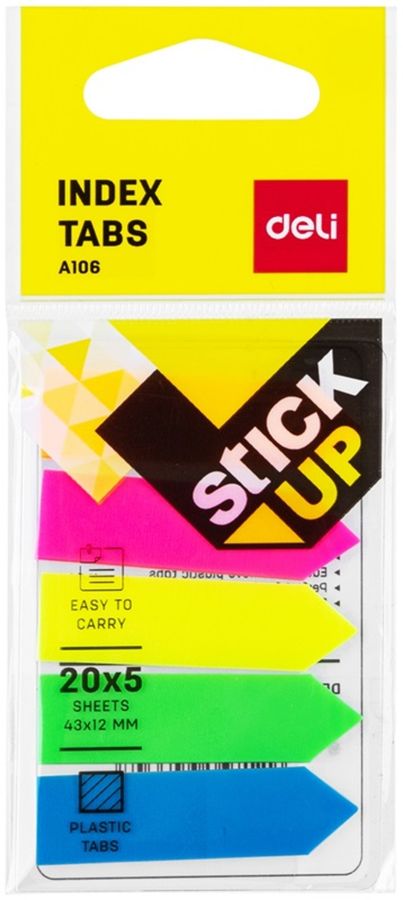 Закладка с липким краем пластик 12х43мм 20л 5цв DELI EA10602