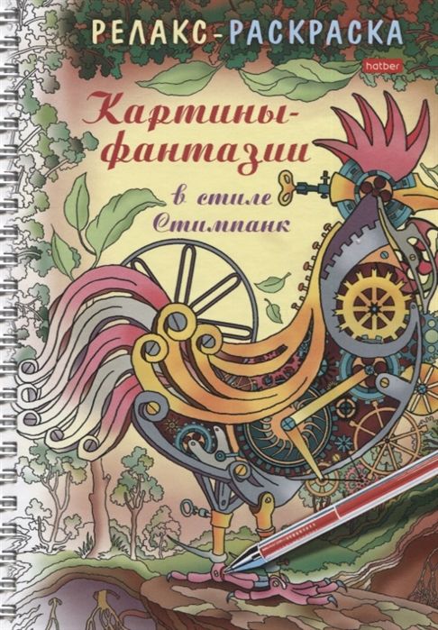 Релакс-раскраски – отличный способ отвлечься и расслабиться после тяжелого трудового или учебного дня. Рисунки в стиле стимпанк привлекают внимание удивительными формами и элементами, сопровождаются отрывками известных стихотворений. Изделия А5 формата удобно брать с собой, твердая обложка на спирали позволяет заниматься творчеством практически в любом месте и положении. С книжками удобно работать, даже если сложить их пополам. Картины можно раскрашивать карандашами, фломастерами, шариковыми и гелевыми ручками.