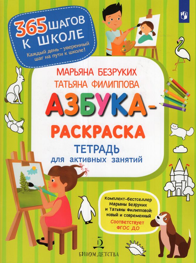 ЭКСПРЕСС–ПОДГОТОВКА К ШКОЛЕ! Имя руководителя уникального комплекта "365 шагов к школе" известно даже тем родителям, которые не следят за тенденциями в дошкольном образовании. Марьяна Безруких – академик, директор Института возрастной физиологии РАО. В этом комплекте продумано все – и форма, и содержание. Темы во всех пяти пособиях сквозные: буквы и звуки, чтение и развитие речи, цифры и навыки счета, окружающий мир, развитие мелкой моторики. Все задания связаны сквозной идеей пользы и удобства. В "Азбуке" – базовые знания, в тетрадях – закрепляем и повторяем, в прописях – рисуем, раскрашиваем, пишем. Полный курс занятий, в котором есть все, что нужно будущему первокласснику. Результат гарантирован – дети умеют читать, писать, считать, многое знают окружающем мире, у них хорошо развита мелкая моторика, они хотят и могут учиться! "Азбука-раскраска" - одно из пяти пособий комплекта, содержит тематические развороты для раскрашивания с новой информацией по теме и ключевыми словами.